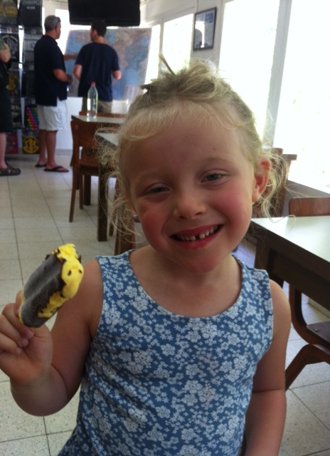 It is very important to drink here, even if you don’t think you are thirsty. One can get a headache by the middle of the day if your tissues are not hydrated and from there it is the fast track to heatstroke or dehydration. The standard tip is to drink about 2-liters a day. You can buy bottles of water for your apartment or hotel room at a supermarket (cheaper than the hotel gift shop). Bring your water for yourself and your children for the whole day. The water in the bottles is yummy and fine.